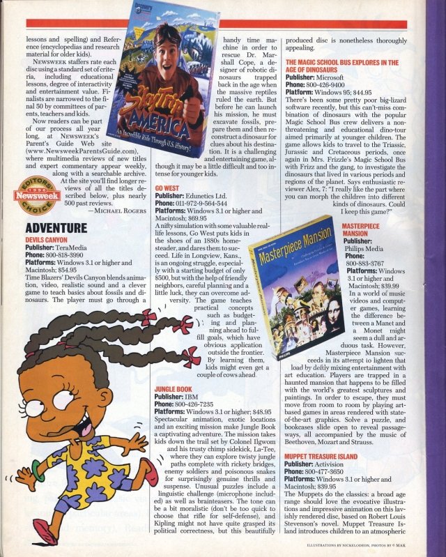 - 1996 – Newsweek magazine named Go West!, a multimedia, software adventure as one of the top 50 software titles for children in 1996. I was the editor and scriptwriter on this project.