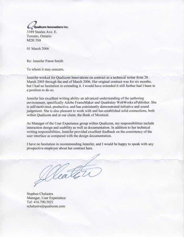 “In addition to her technical writing responsibilities, Jennifer provided excellent feedback on the consistency of the user interface as compared with the design documentation.”